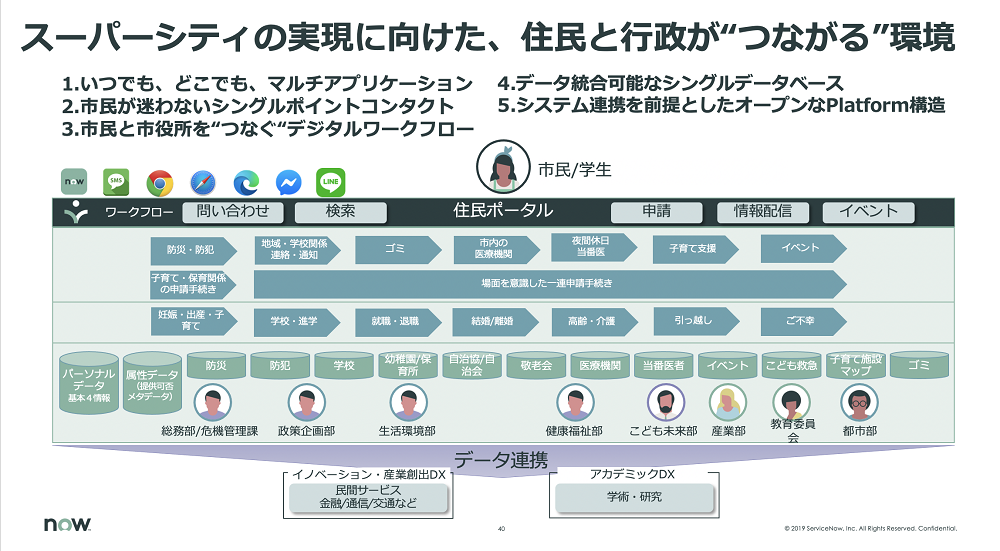 ServiceNow「スーパーシティの実現に向けた、住民と行政が"つながる"環境」イメージ図