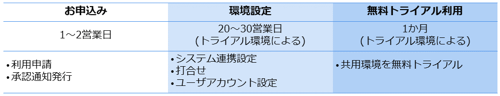お申し込みからトライアル利用開始までは、下記の流れ(例)です。