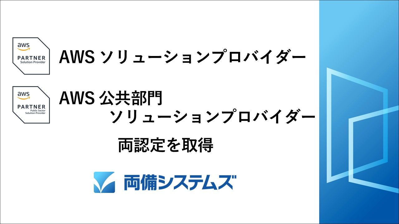 株式会社両備システムズ(本社:岡山県岡山市、代表取締役社長:松田 敏之、以下 当社)は、Amazon Web Services, Inc.(以下、「AWS」)が提供するプログラムにおいて、「AWSソリューションプロバイダー(以下「SPP」)」と「AWS公共部門ソリューションプロバイダー(以下「PS-SPP」)」を取得いたしましたのでお知らせいたします。