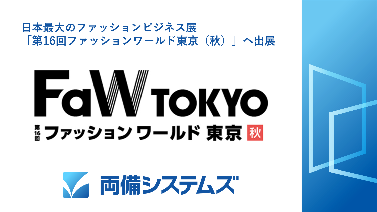 | 展示会名 | 日本最大のファッションビジネス展「FaW TOKYO (ファッション ワールド 東京)」 |