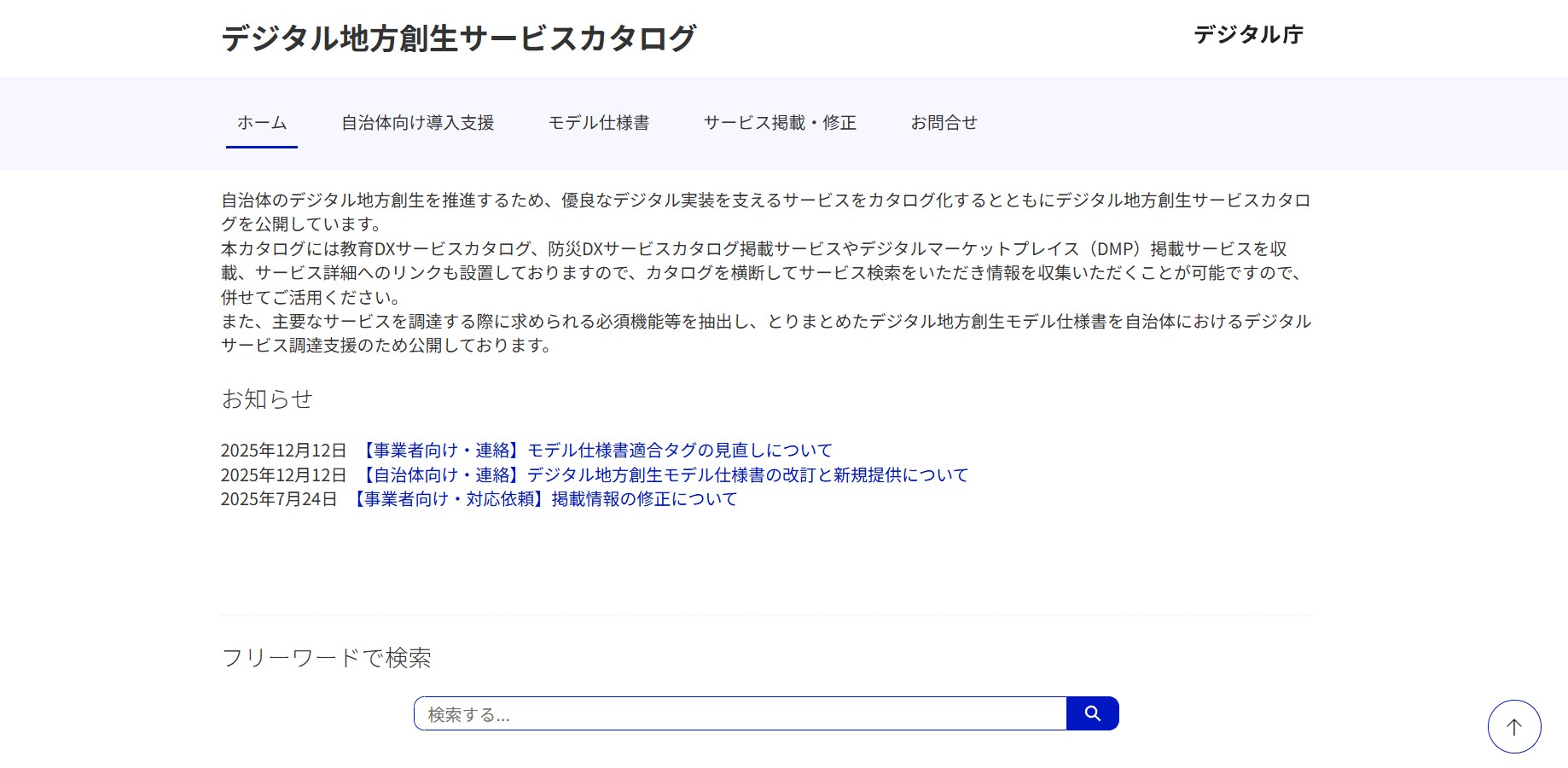 デジタル地方創生サービスカタログ トップページ