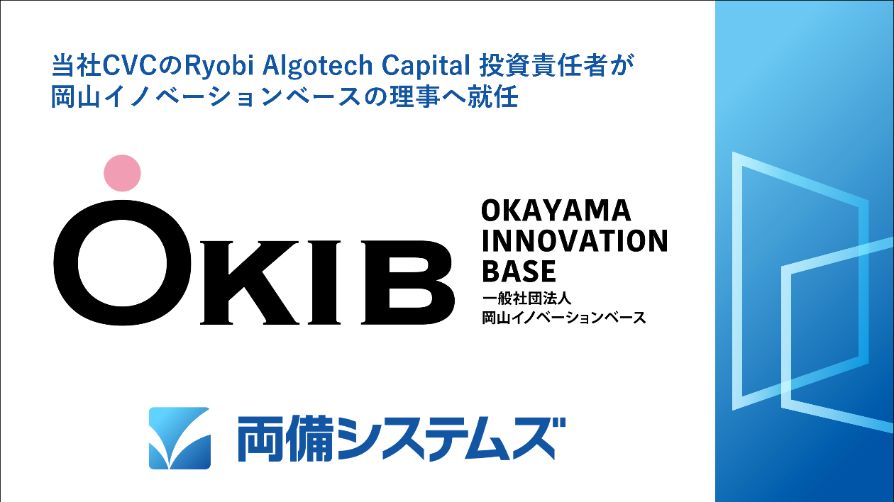 株式会社両備システムズ(本社:岡山県岡山市、代表取締役社長 松田敏之)の投資運用子会社、株式会社Ryobi AlgoTech Capital(リョウビ・アルゴテック・キャピタル)(本社:東京都港区、代表取締役社長:小野田吉孝、以下 当社)取締役 投資責任者である鈴木恭輔が、岡山の未来を切り拓く起業家・経営者を支援するために設立された、一般社団法人岡山イノベーションベース(以下 OKIB)の理事へ就任する事となりました。