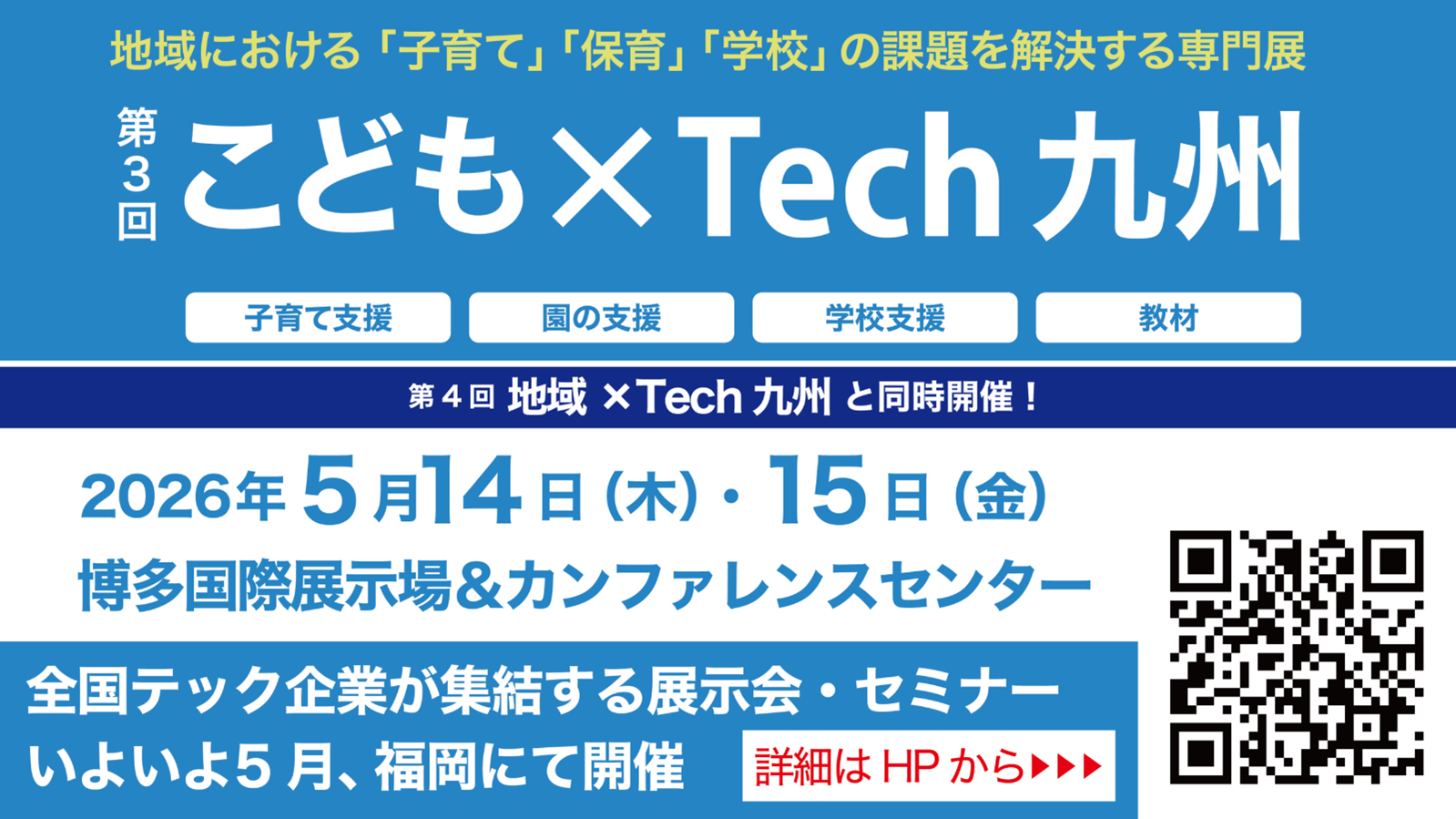 https://kodomotech.jp/kyushu/(※「第3回 こども×Tech九州」の公式サイトへ遷移します) |