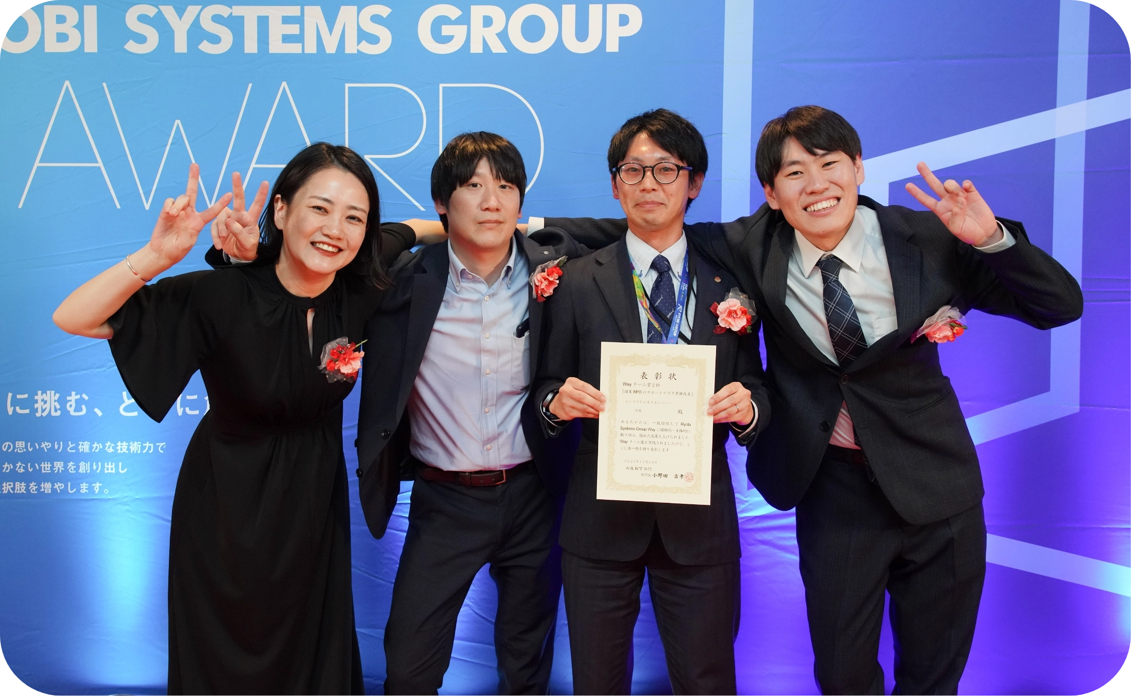 一年間、真剣に仕事と向き合い、壁を越えてきた仲間たち。その歩みを称えるために集ったこの日、会場は拍手と笑顔、そして温かな声援に包まれました。受賞者だけでなく、ステージを見守り、全力で盛り上げる一人ひとりが、この夜の主役。フォーマルな表彰式でありながら、遊び心も忘れないのがRYOBI SYSTEMS GROUP流ということで、社員の努力を全力で労いました。